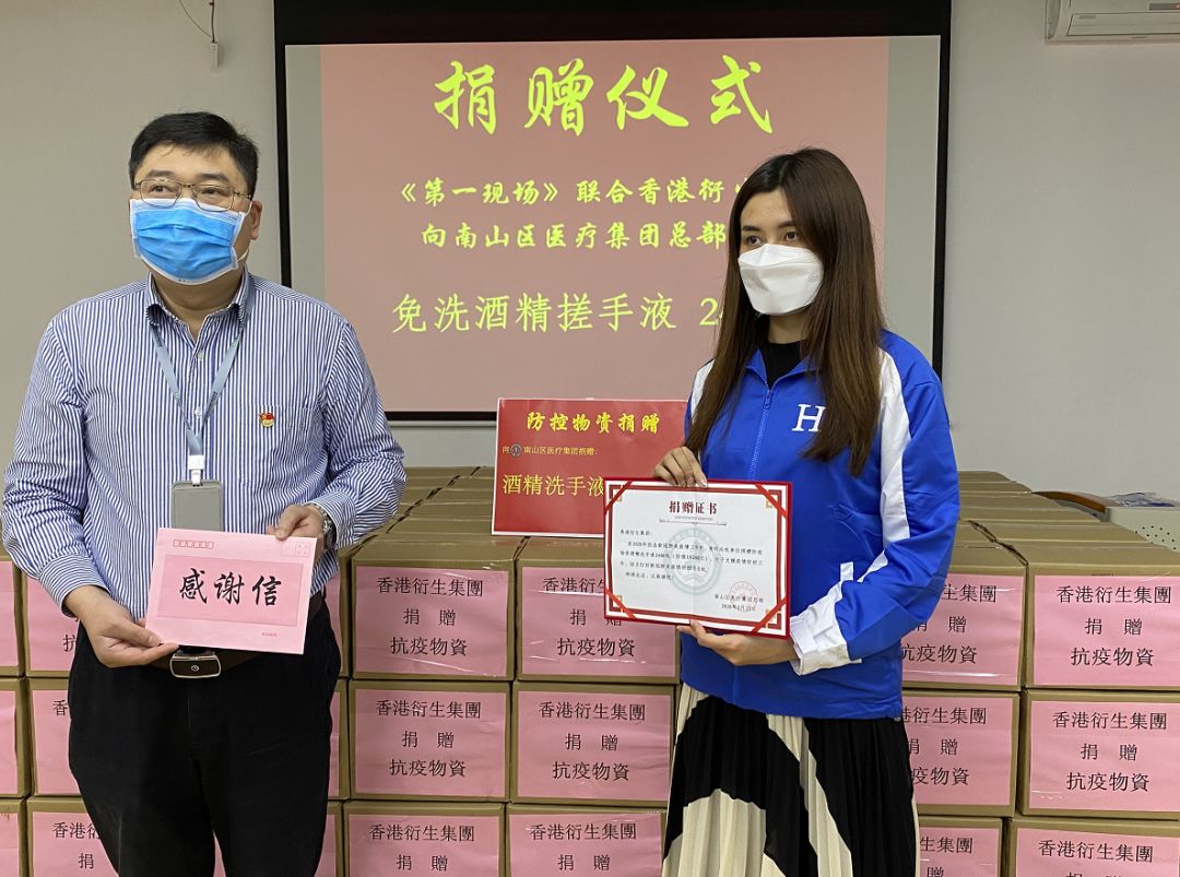 2月26日,香港衍生集團(tuán)聯(lián)合深圳都市頻道《第一現(xiàn)場(chǎng)》欄目開(kāi)展了《深?lèi)?ài)天使 現(xiàn)場(chǎng)行動(dòng)》抗疫捐贈(zèng)活動(dòng),向深圳市南山區(qū)醫(yī)療集團(tuán)總部的82家公立社康醫(yī)院,捐贈(zèng)價(jià)值19.2萬(wàn)元的2400瓶「私+呵護(hù)」免洗酒精搓手液(600ml),藉此慰問(wèn)抗擊疫情的一線(xiàn)醫(yī)護(hù)工作人員!